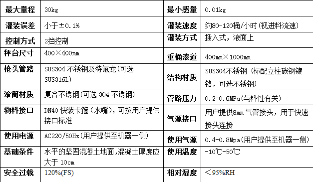 ■ 灌裝頭高度可手動調(diào)節(jié),適用于不同高度的包裝桶;